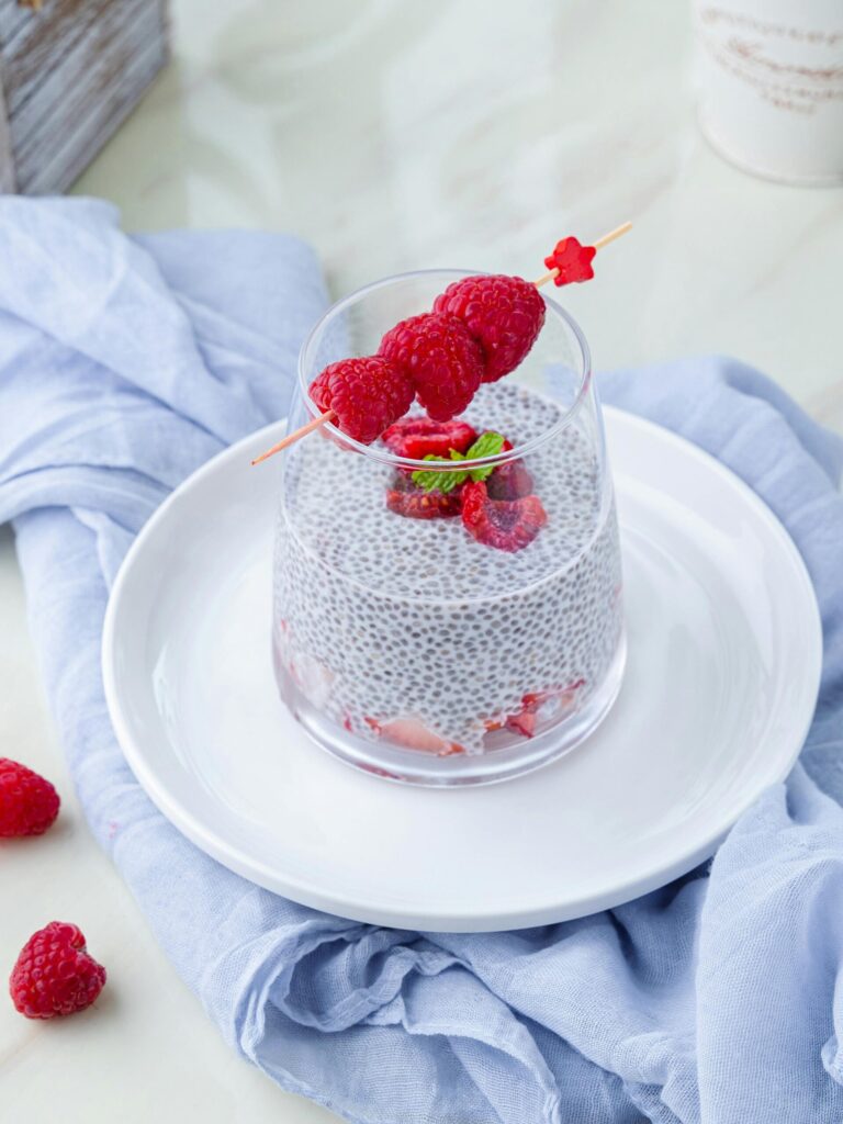 Dek de kom af en zet deze in de koelkast. Laat het mengsel minimaal 4 uur, bij voorkeur een hele nacht, staan zodat de chiazaadjes kunnen geleren en een puddingachtige consistentie krijgen.